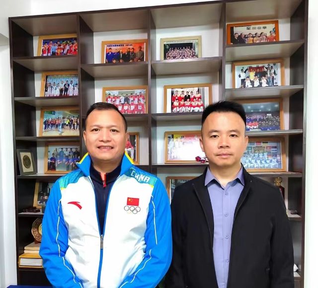 近日,中国泰拳国家队教练郭裔博士(广东首位武术博士、金甲泰拳KINGKA品牌创办人、湛江籍在外杰出乡贤)刚带队前往新加坡参加完世界职业泰拳争霸赛返到广州,和刘银波(广州商爵企业管理有限公司创办人)在金甲广州总部座谈乡情、了解商爵公司近期和湛江籍企业家的合作情况。